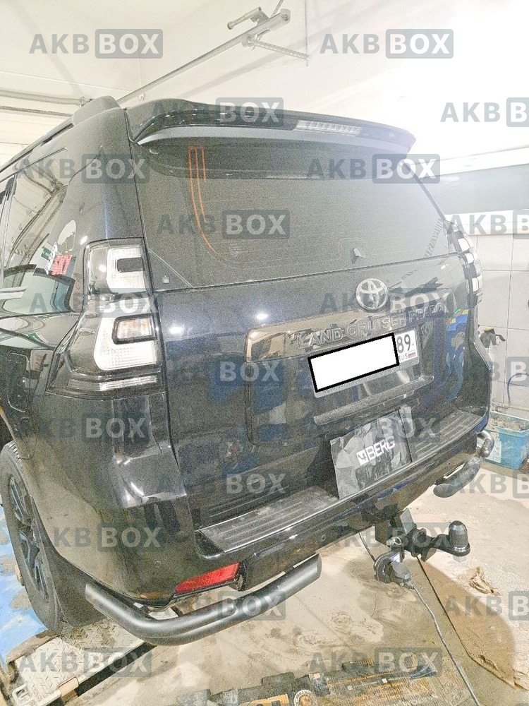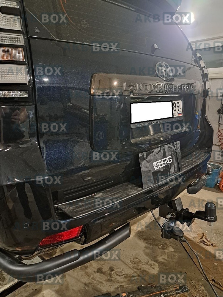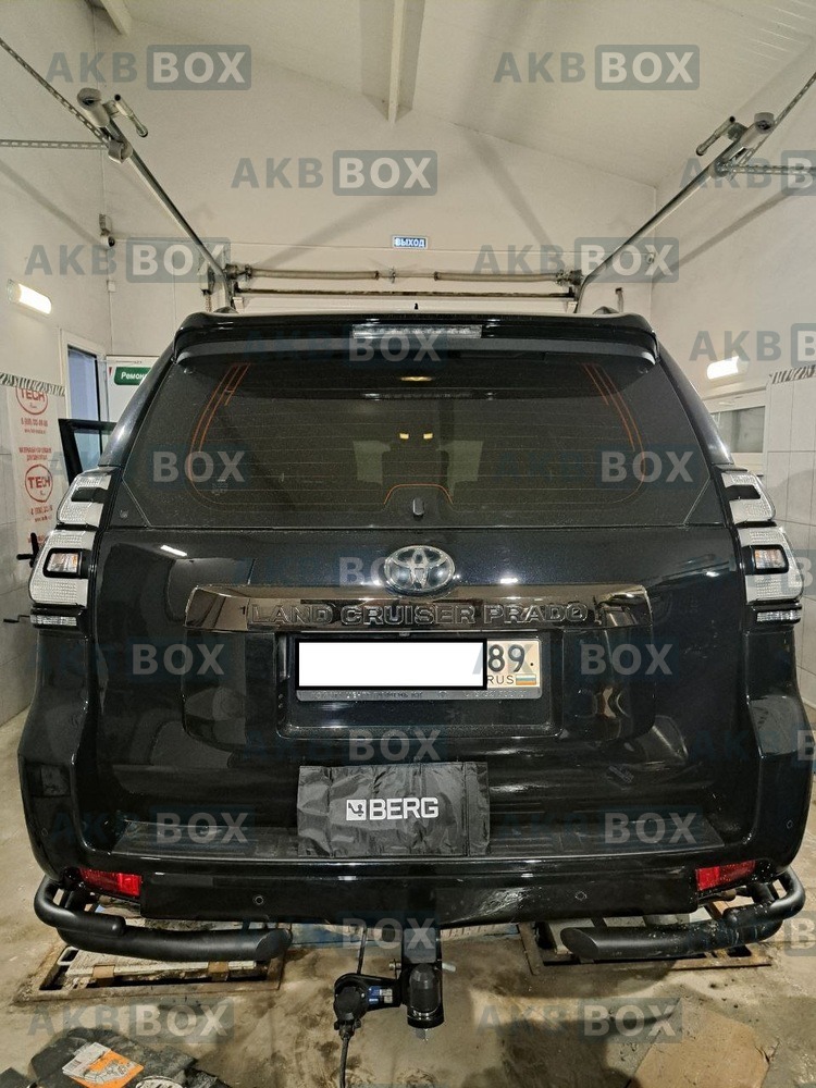 Фаркоп Berg для Toyota Land Cruiser Prado 120 с 2002 по 2009 г., и Prado 150 (кроме Black Onyx) с 2009 г. Требуется подрезка бампера. Тип шара: E (шаровый узел под американский квадрат). Нагрузки: 2200/120 кг. Масса фаркопа 9,2 кг (без электрики в комплекте).
