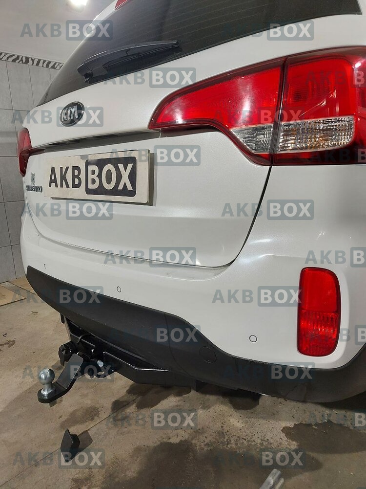 Фаркоп Бизон для Hyundai Santa Fe 2012-2018. Легкосъемный шар под квадрат. Установка без подрезки бампера. Тип шара: E
